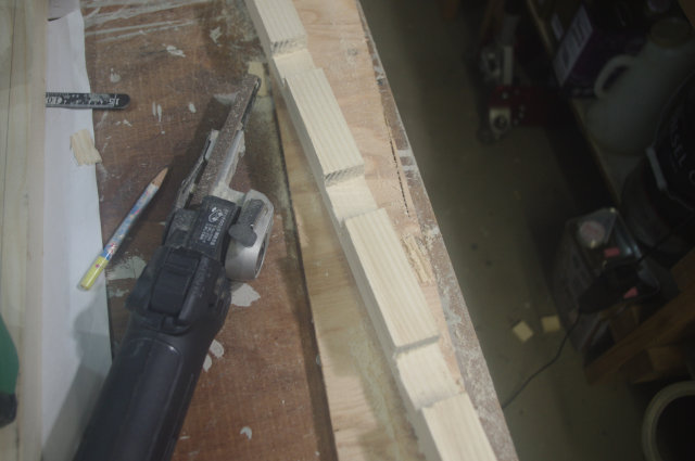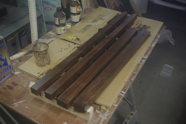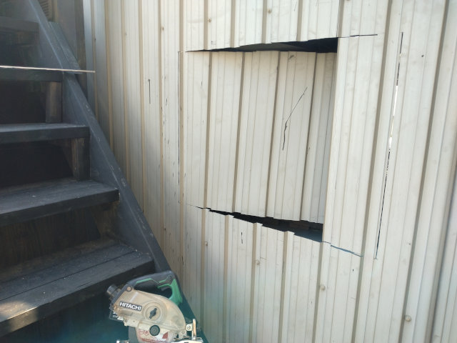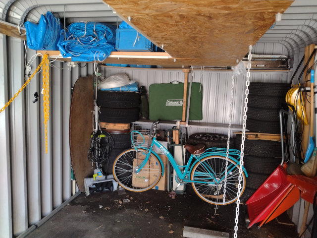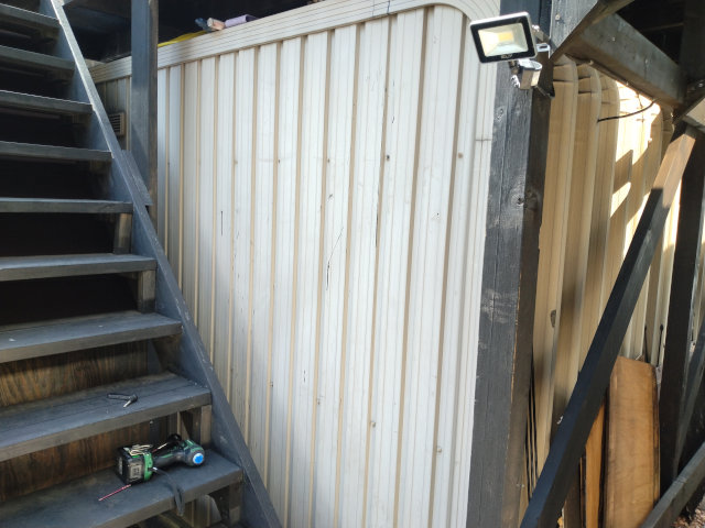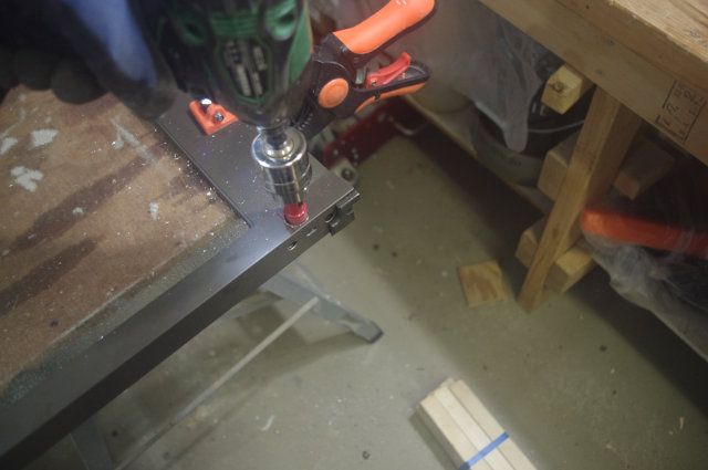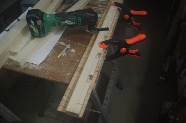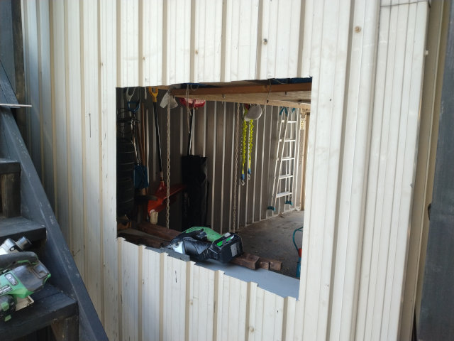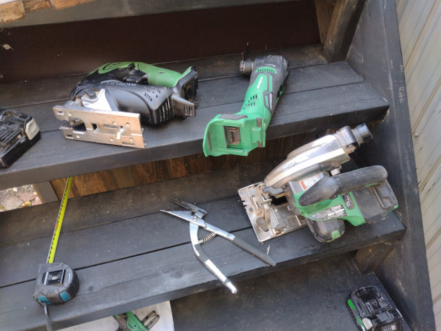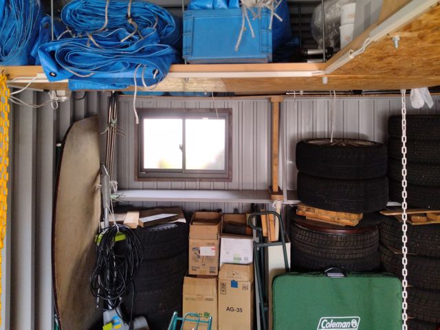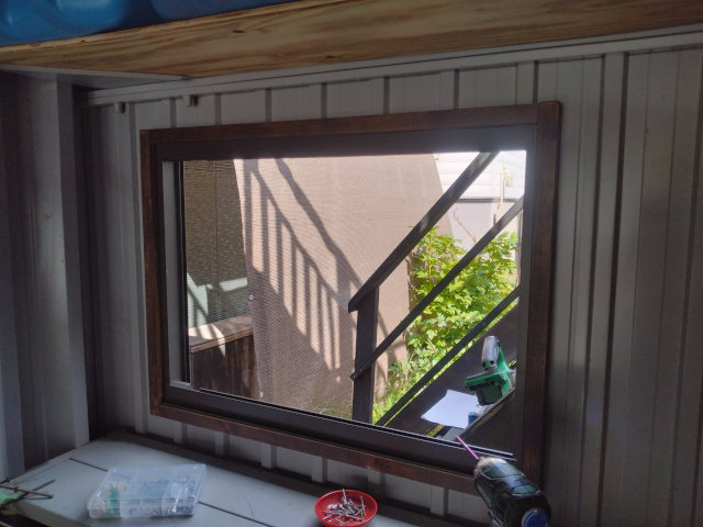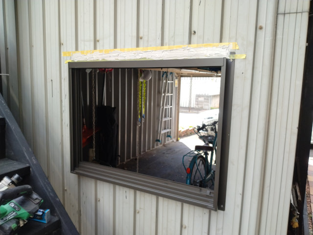 2025年8月30日。 自宅のカスケードガレージにDIYにて窓を設けました。下の写真は設置完了後のもの。 モーターを高トルクなものに変更後、シャッタースラットが電源喪失時に手動で持ち上げるのが難しそうだと判断して、万が一の時にこの窓から入って中からモーターを取り外し、手動開閉可能な状態にするという目的での設置です。 ![]() ものはLIXIL(TOSTEM)のアトモスUというヤツで、ヤフオクにて送料込13,300円。 ![]() サイズは780×570mmの引違い窓で半外付、シングルの型ガラス仕様です。 ![]() 組み立てます。 ![]() ![]() 30分も掛からないで組み立てられます。 ![]() 9月15日。 30×40mmの垂木を使って内側の枠を製作します。 カスケードガレージの背面の壁材は横方向に不等ピッチの蛇腹になっていて、凹凸を合わせて枠を加工する必要があります。以下の様な感じです。 ![]() 35×16mmの溝を一定間隔で掘っていきます。 マルチツールとマイクロベルトサンダーで加工しました。 ![]() ![]() ![]() 9月15日。 軽くサンディングしてから余っていたニスで塗装します。 ![]() 開口位置を決めます。ウッドデッキの筋交いを一時撤去。 ![]() 撤去しました。 ![]() 内側の様子。やはり向かって左側、中棚と上棚の間に開けるしかないかな。 ![]() スペースを空ける。 ![]() 外側。開口位置に墨線を引く。 ![]() 丸のこに鉄工用のチップソーを装着。 ![]() 大まかに丸のこでカット。 ![]() 狭いところや角の部分はジグソーとマルチツール、金切りバサミを使用。 ![]() 開口できました。 ![]() ![]() サッシ枠を固定します。 ![]() 内側の枠も取り付け。 ![]() 雑だけど(笑)コーキング。 ![]() 雑なんですが、仕上がりよりも壁面に凹凸があるので隙間をしっかり埋めることを優先しました。凹みの箇所はかなりガッツリ塗りたくってます。 ![]() 窓を差し込みました。 ![]() ![]() ![]() マスキングテープを剥がして設置工程が完了。 ![]() 筋交いを戻しました。 ![]() 9月27日。 外鍵を取り付けます。ある意味これが肝です。 緊急時に外から入ることができるということが重要だからです。 amazonにて2,200円。窓枠が細いためシリンダー径の小さいサイズが必要で、何とか取り付けできそうなφ15〜16mmのものでこれが最安でした。 ![]() 開口位置をマーキング。取り付けできそうな箇所は下側のこの位置しかないです。 ガラスが5mm程度は中に食い込んでいるので、中央はもちろん、上も厳しいです。 しかも穴開け以外にも切欠き加工も必要っぽい... ![]() φ16mmのホールソーで開口。 ![]() ![]() ![]() 位置合わせと加工に結構難儀しました。やはり切欠きも必要でした。 ![]() ![]() 余りラフに行くと鍵を回せない様な事態が想像できるので慎重に行きました。 ![]() ![]() ![]() ![]() ![]() 完成しました。 ![]() ちゃんと締まりました。ホッ.... ![]() ![]() これでこの窓の役割を果たせそうです。 ![]() 因みにこのガレージに侵入しても、中古車1台と古タイヤしかありませんので、メリットないですよ(笑